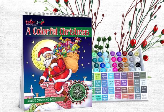 Grab our A Colorful Christmas coloring book + Art Markers bundle now!