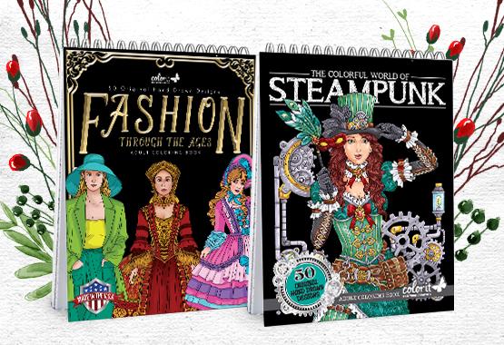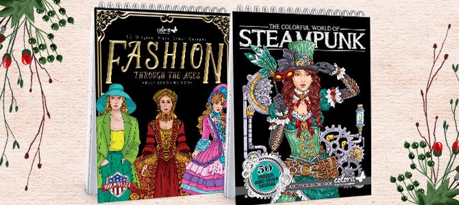 Grab our Fashion Through the Ages + Steampunk Coloring Books bundle now!