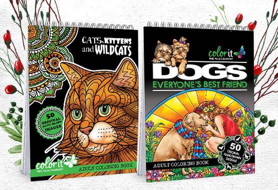 Grab our Cats, Kittens, & Wildcats + Dogs, Everyone’s Best Friend Coloring Book Bundle now!